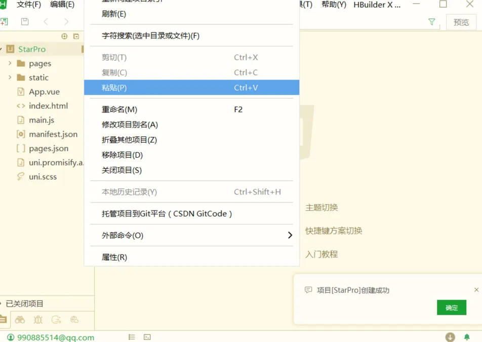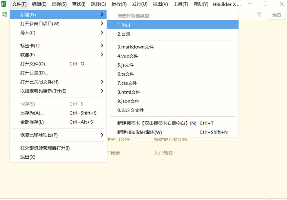 - 创建一个新的uni-app项目,点击文件-新建-项目