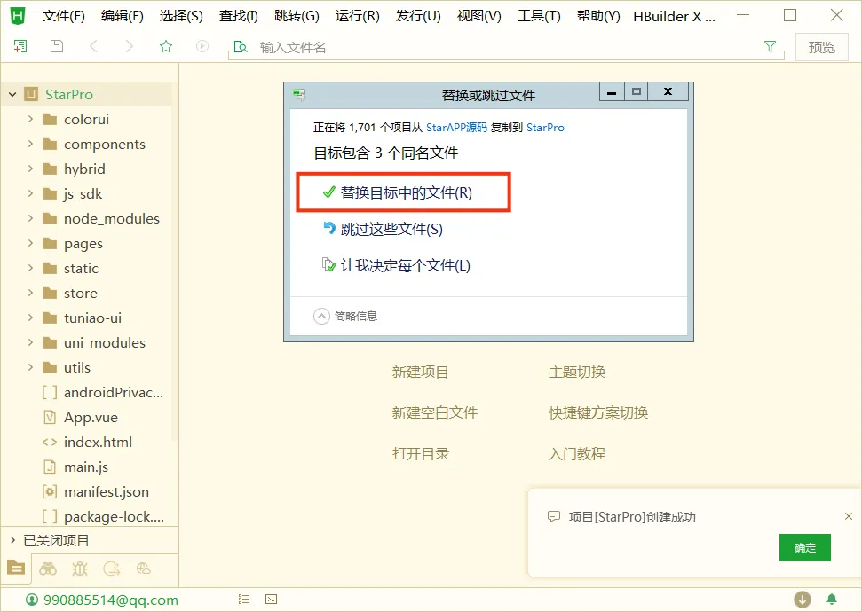 - 提示替换或跳过文件我们选择替换目标中的文件即可