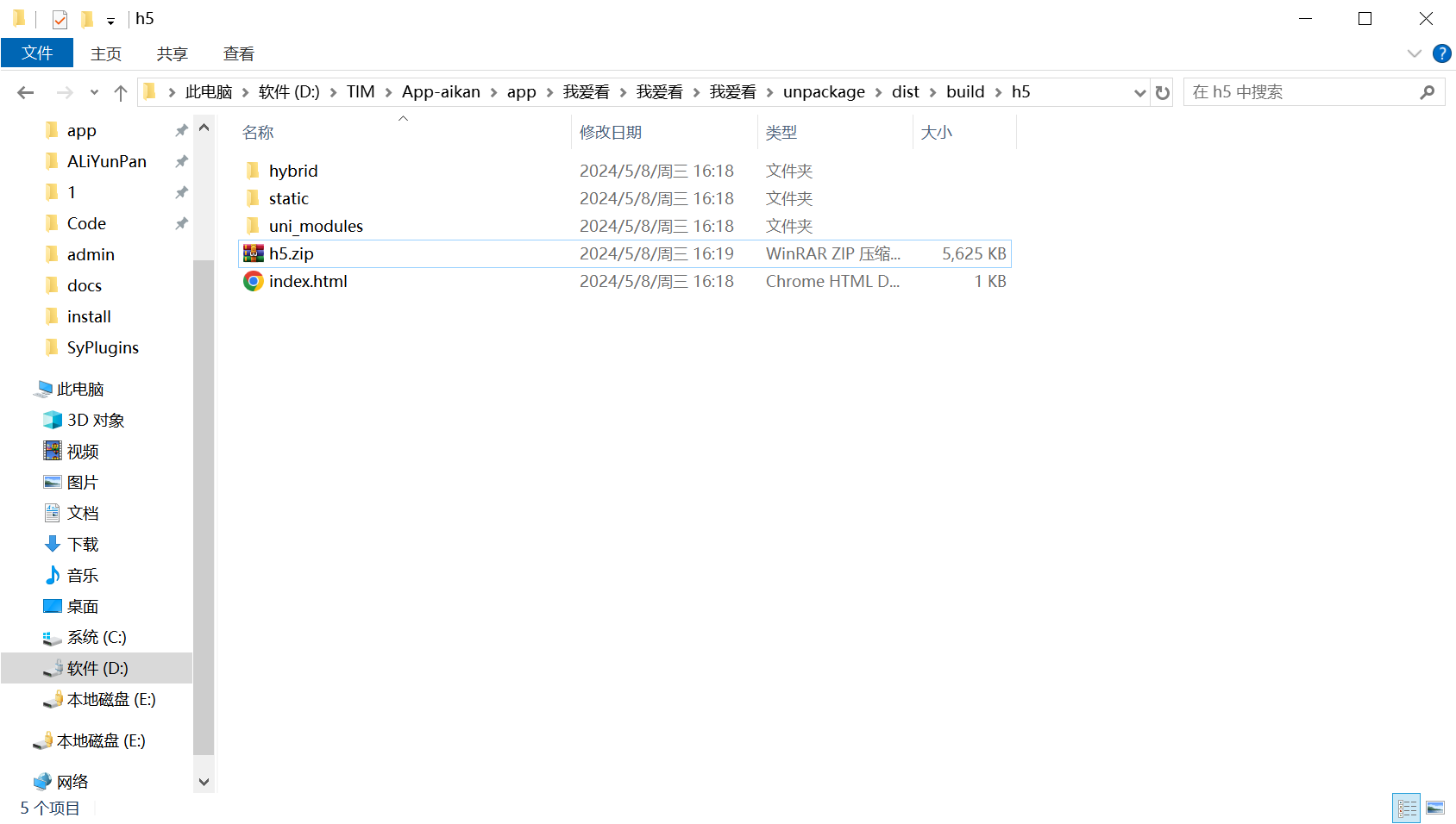 - 待h5源码生成后,打包h5源码