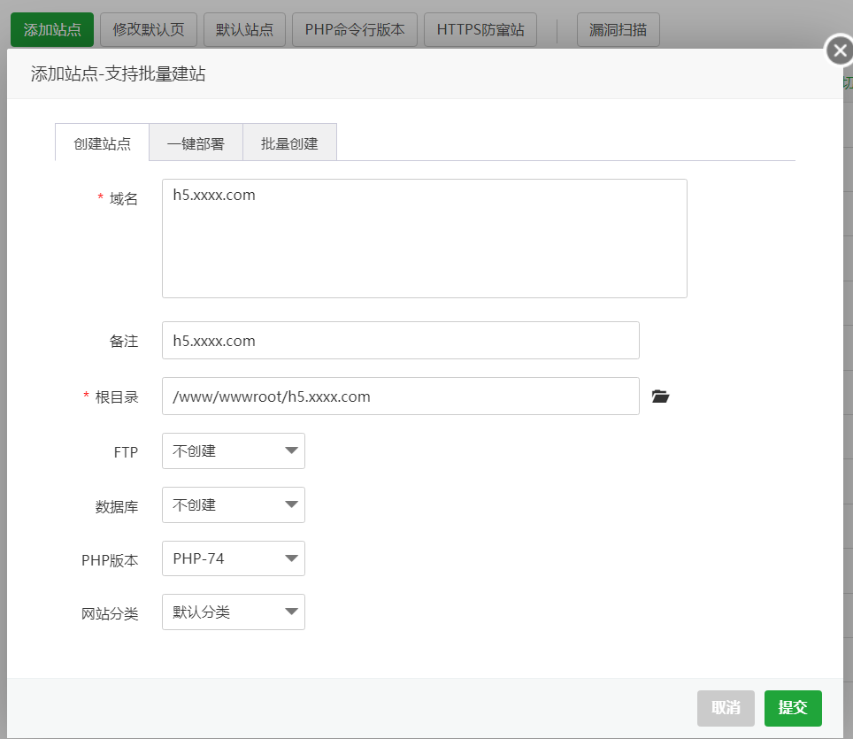 - 准备一个(子)域名作为h5站点,创建一个网站,然后建议配置ssl